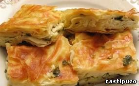 Тесто необходимо разделить на 2 части раскатать в пласты 3 -4 см. толщины. Один пласт аккуратно выложить на предварительно смазанный маслом противен