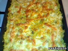 Макаронные изделия сварить в подсоленной воде. Сваренные яйца мелко нарезать, добавить сметану, растопленное масло, хорошенько вымешать и выложить на сковороду или противень, предварительно