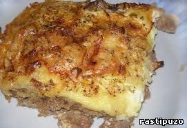 Влить на сковородку растительное масло, положить мясо. добавить мелко нарезанный лук, 3-4 столовые ложки мясного бульона или воды,посолить. пер