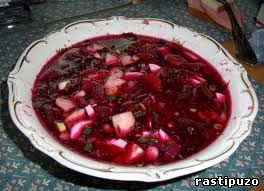 Промыть, почистить и нарезать мелкими дольками свеклу. Почистить и мелко порезать лук.